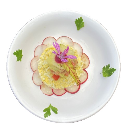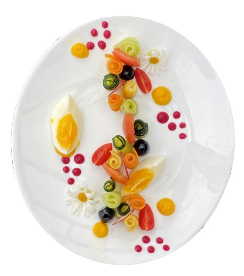 Œuf mimosa avec mille feuilles de pomme