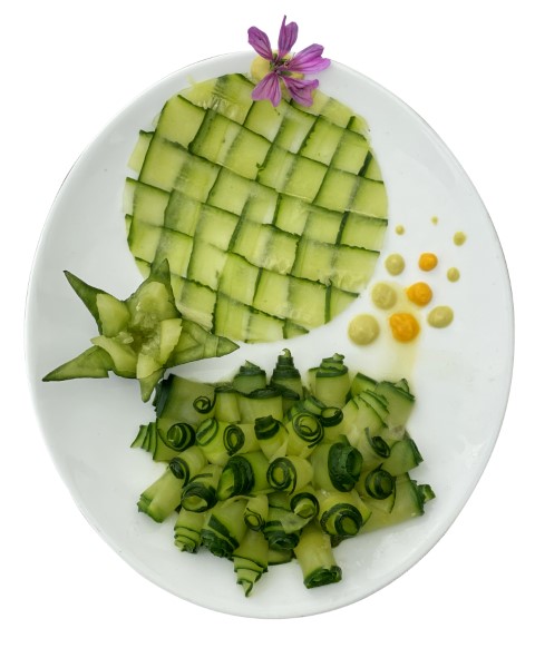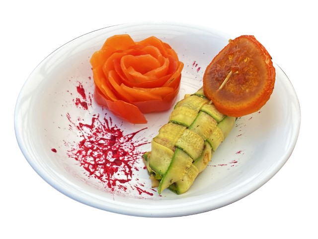 Cannelloni de courgettes avec rosace de carotte sautée