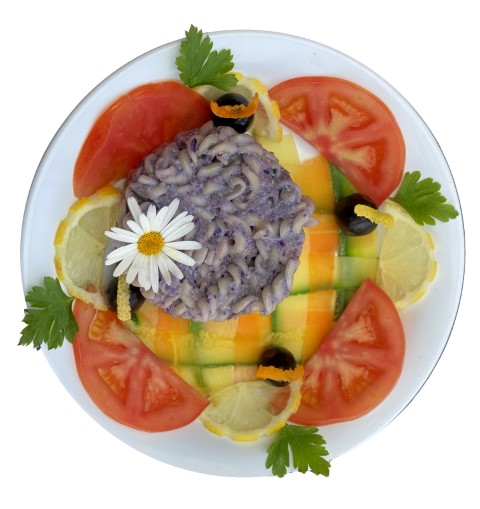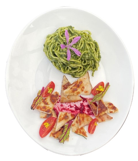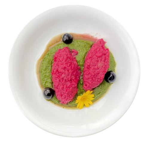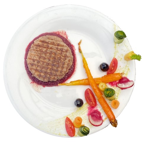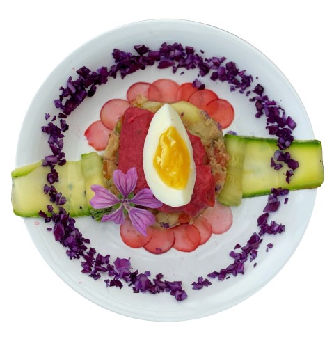 Rosace de betterave accompagnée d'une omelette