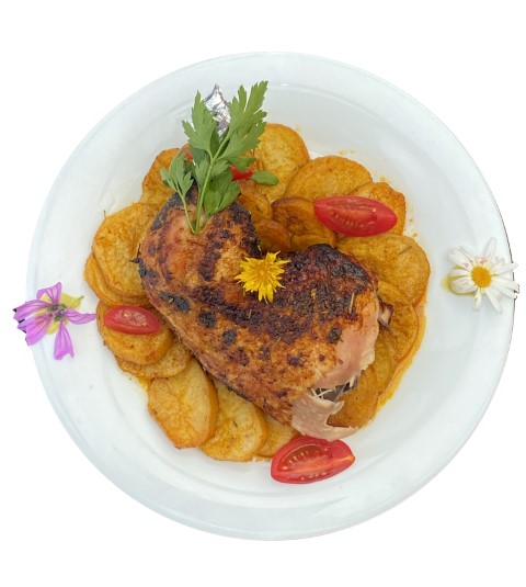 Cuisse de poulet rôti avec pommes de terre au four