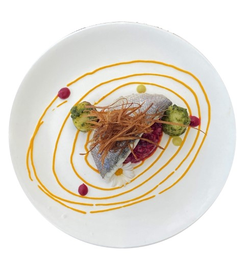 Filet de Dorade grillée avec potiron aux cheveux d'ange