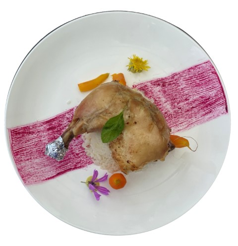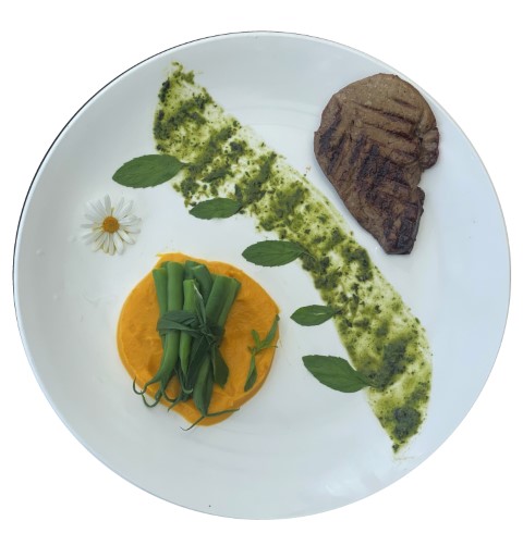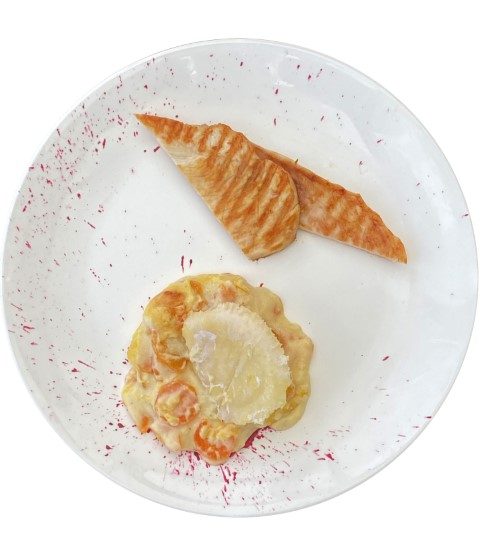 Blanc de poulet grillé sur tapis de purée de carottes