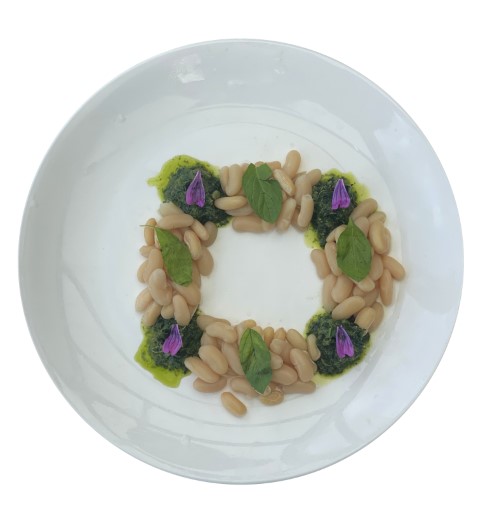 Mousseline d'épinards avec haricots blancs sautés à l'ail