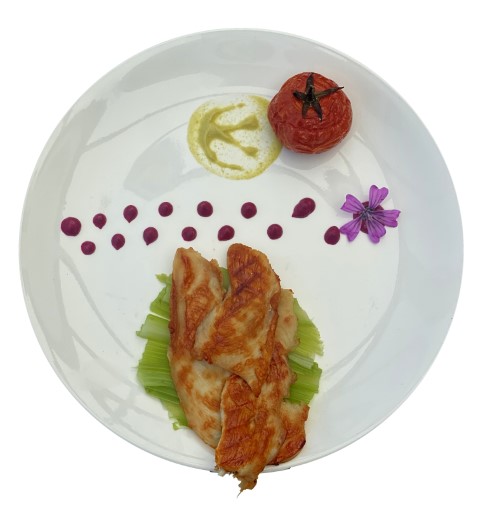 Dinde grillée sur canapé de céleri et tomate provençale