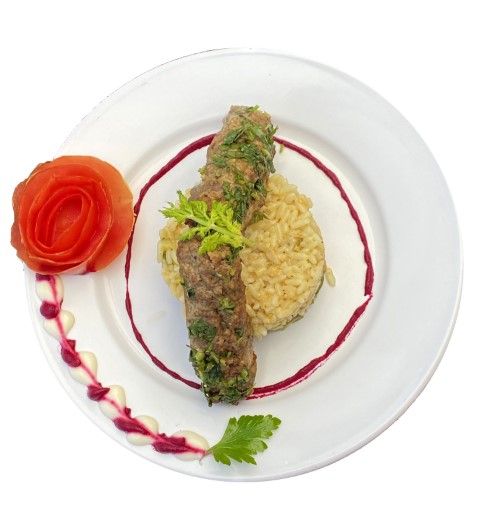 Brochette Kefta accompagnée de riz pilaf et légumes sautés à l'ail